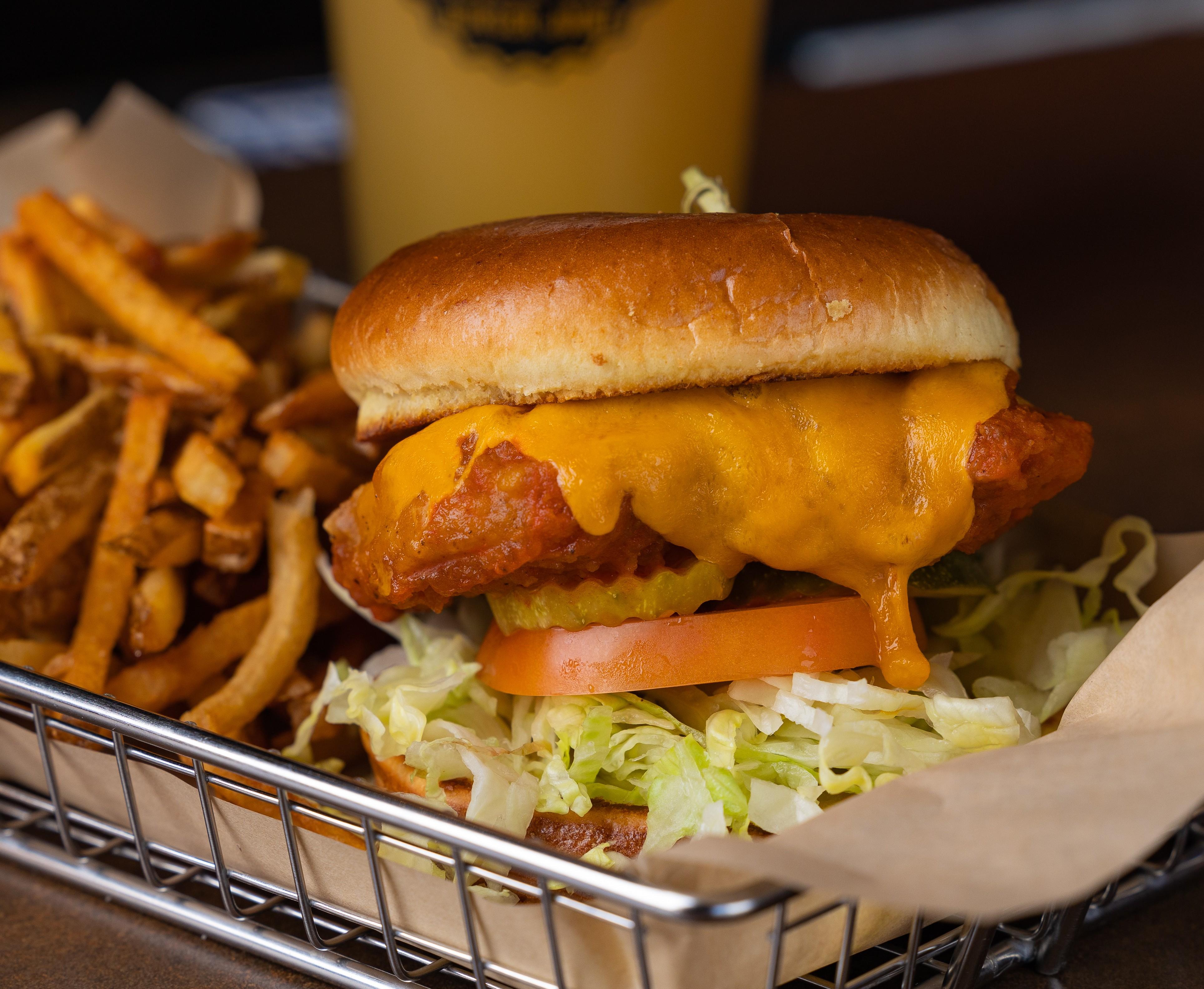 Fried Chicken Patty | PepperJack Cheese | Lettuce | Tomato | Served on a Brioche Bun
