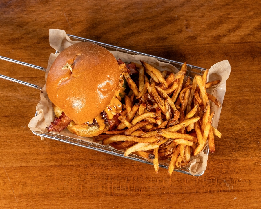 Cheddar Cheese | Crispy Bacon | Grilled Onions | Crispy Fried Onions | Housemade Bourbon Aioli